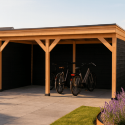 Als optie kan je kiezen om je overkapping af te maken met zweeds rabat wanden. Ga je voor de zwart gespoten variant? Dan zijn dit zwart gespoten vurenhouten planken, omdat vuren zich beter en mooier laat bewerken met beits dan Douglashout. Afwerking met zweeds rabat is een echte aanrader! Past dit niet bij jouw stijl? Vraag dan een offerte aan voor een modernere afwerking met onze rhombusprofielplanken.
