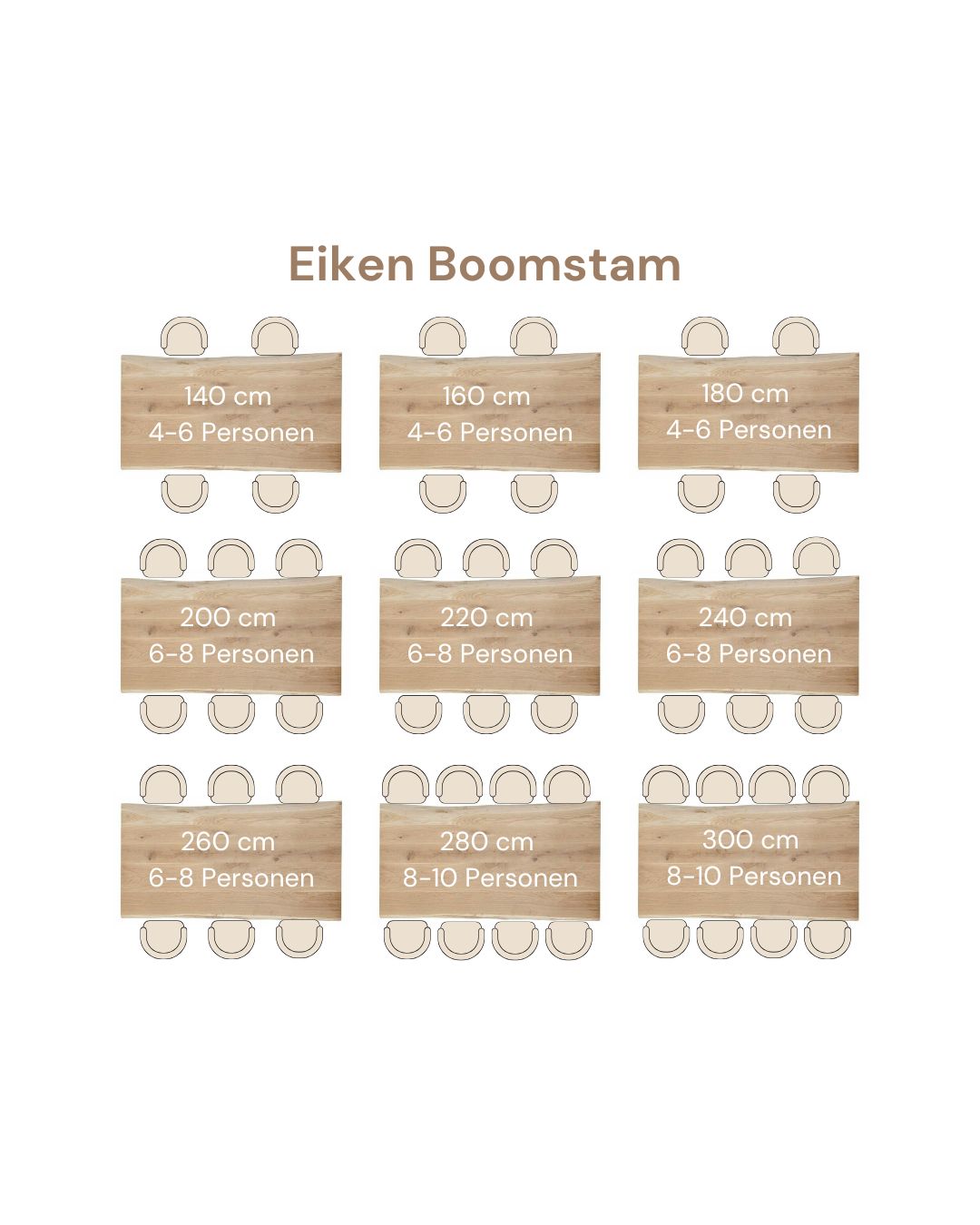 💡 Tip: Combineer uw eiken boomstamtafelblad met een stalen onderstel voor een stoere industriële look, of kies een houten onderstel voor een warme, landelijke stijl.