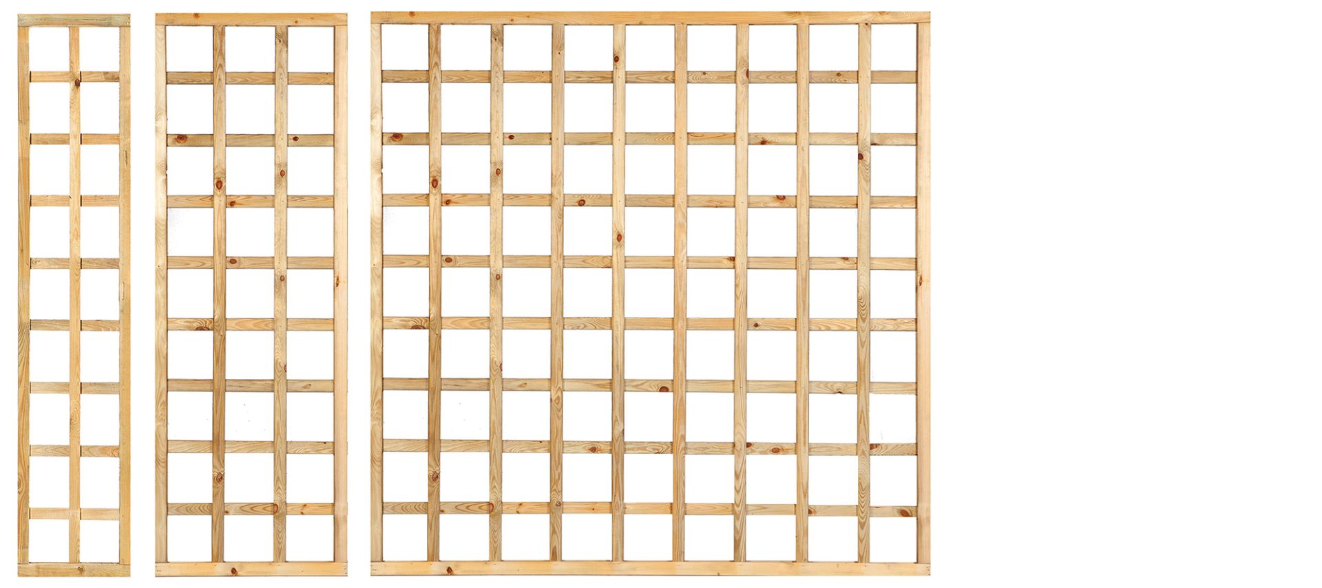 Dit trellisscherm is gemaakt van geïmpregneerd grenenhout, dat weinig onderhoud nodig heeft. Na verloop van tijd zal het hout een grijze patina ontwikkelen, maar dit kan worden voorkomen door het hout af en toe te behandelen met beits of olie.