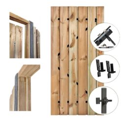 De geschaafde afwerking geeft het grenenhout een nette uitstraling, terwijl roestvrijstalen schroeven en een gegalvaniseerd stalen poortframe extra stevigheid en weerbestendigheid garanderen.