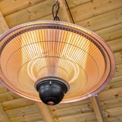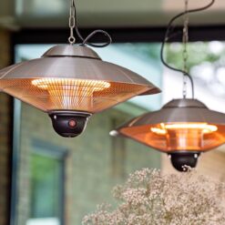 De heater heeft 2 standen, is waterbestendig en kan zowel binnen als buiten gebruikt worden.