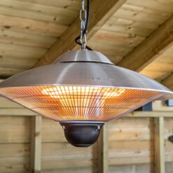 stijlvol en hoogwaardig design van volledig gegoten aluminium. halogeenquartz verwarmingselement. 5-uurs timer.
