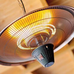 De heater heeft 2 standen, is waterbestendig en kan zowel binnen als buiten gebruikt worden.