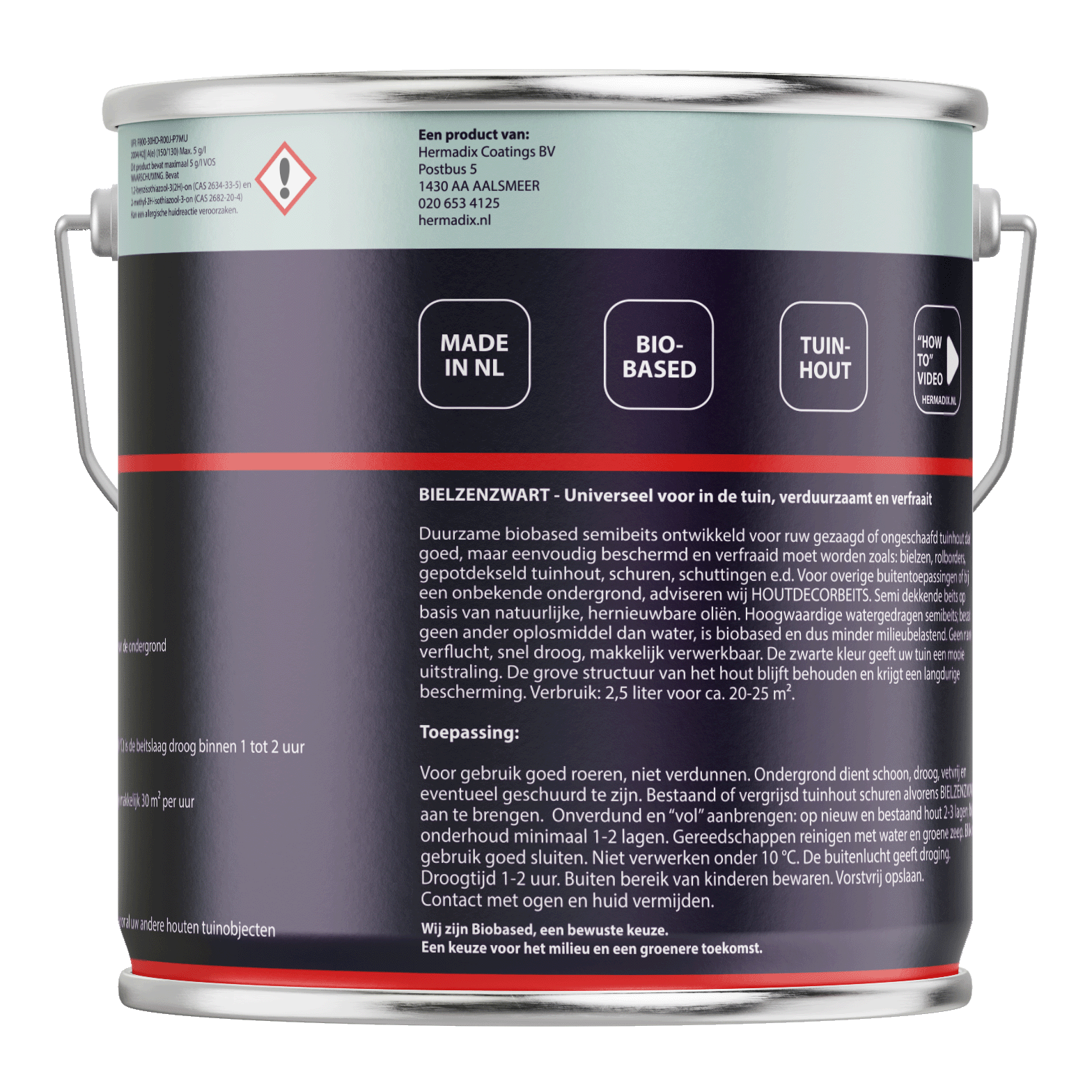Impraline Bielzenzwart is een impregnerend product, zeer geschikt voor het onderhoud en bescherming van bielzen en rolborders. bladdert niet, geeft een zijdematte, zwarte eindlaag. dringt diep in het hout.