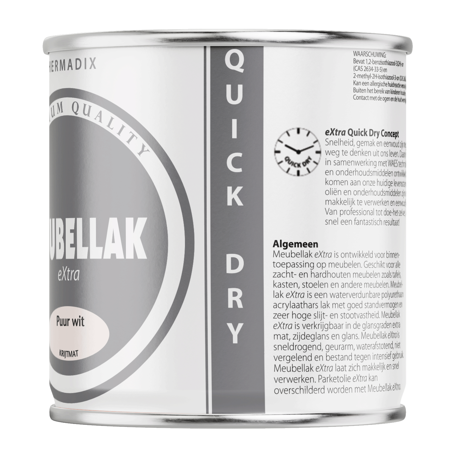 Meubellak eXtra is ontwikkeld voor binnentoepassing op meubelen. Geschikt voor alle zacht- en hardhouten meubelen zoals tafels, kasten, stoelen en andere meubelen. Meubellak eXtra is een waterverdunbare polyurethaan acrylaathars lak met goed standvermogen en zeer hoge slijt- en stootvastheid.