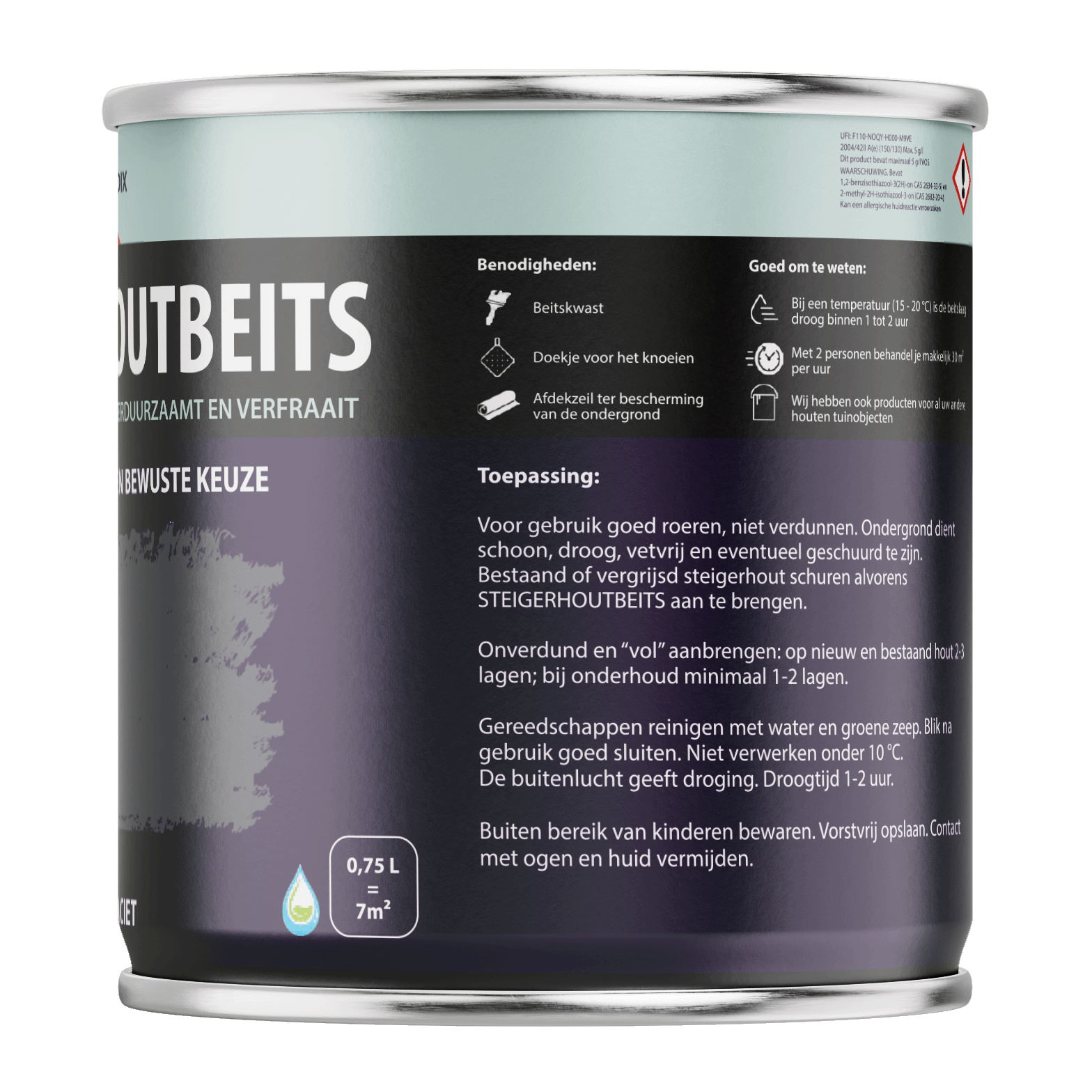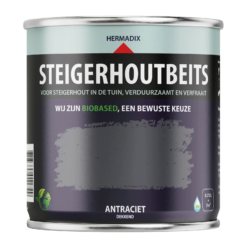 Hermadix steigerhoutbeits is speciaal ontwikkeld voor nieuw en oud steigerhout. steigerhoutbeits is een transparante beits die goed indringt in het hout. steigerhoutbeits droogt snel en is makkelijk verwerkbaar. Steigerhoutbeits is een watergedragen, mens- en milieuvriendelijk beits op basis van natuurlijke oliën.
