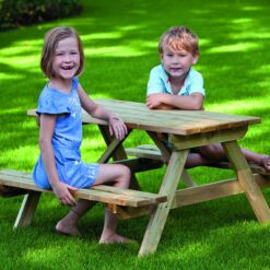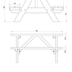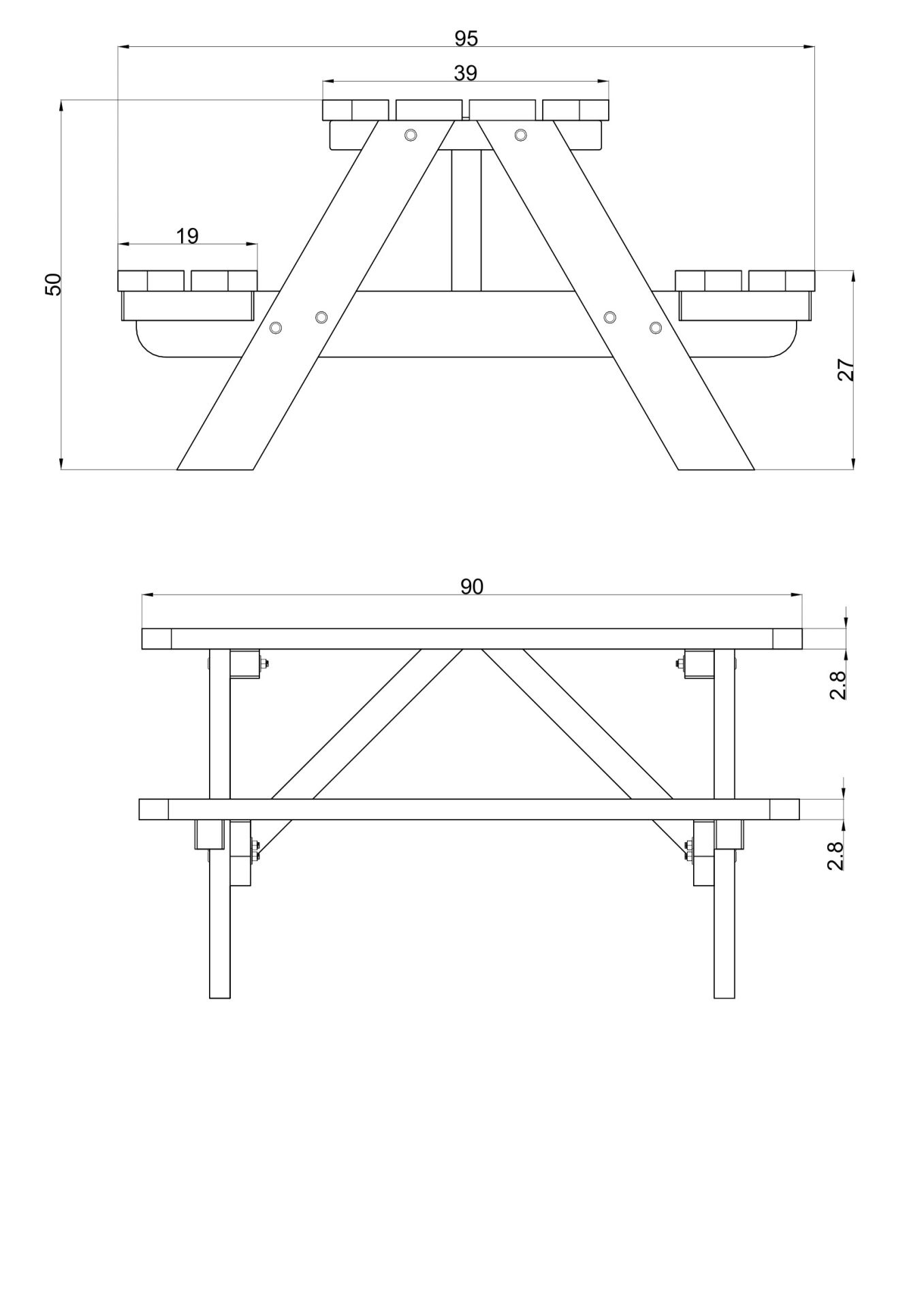 Gemaakt van 2.7 cm dik Geimpregneerd Vuren hout! 90 cm x 50 cm x 95 cm (lengte x hoogte x breedte).