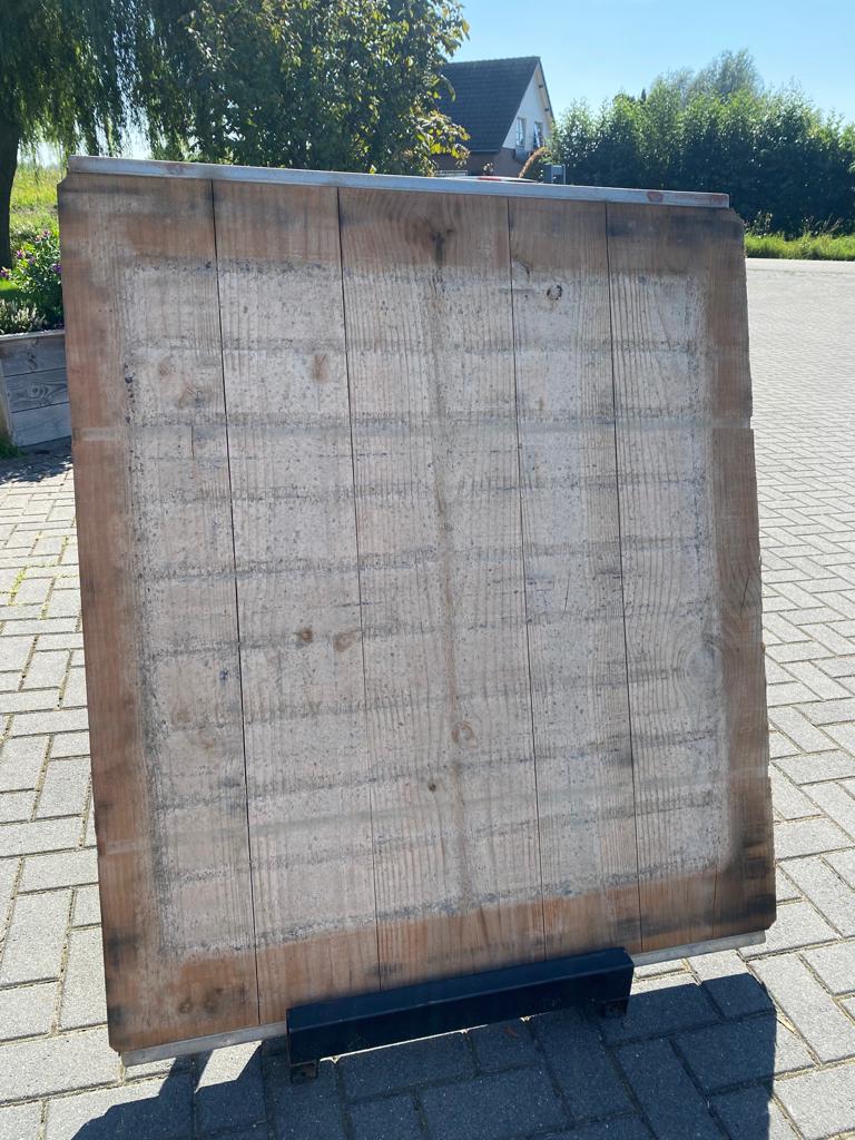 - Constructie: Losse planken samengehouden door 2 metalen C-profielen