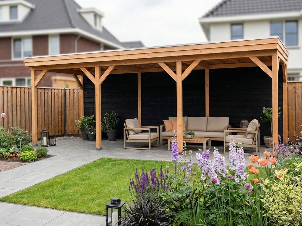 - Maximale ruimte onder één dak – Deze overkapping is maar liefst 7,5 meter breed en biedt daarmee volop plaats voor een grote tuinset, buitenkeuken, jacuzzi of zelfs een combinatie daarvan. Ideaal voor wie royaal wil zitten of een multifunctioneel buitenverblijf zoekt.