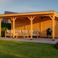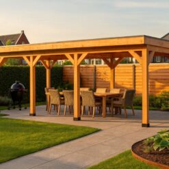 Wil je het hele jaar door genieten van het buitenleven? Dan is deze douglas overkapping van 750×300 cm een uitstekende keuze. Dankzij de extra dikke 14×14 cm staanders krijgt dit model een nog robuustere uitstraling en voelt de constructie bijzonder stabiel aan. Dit maakt de overkapping niet alleen praktisch, maar ook een luxe blikvanger in de tuin.