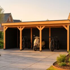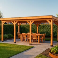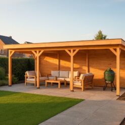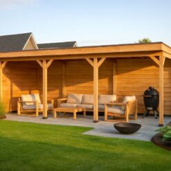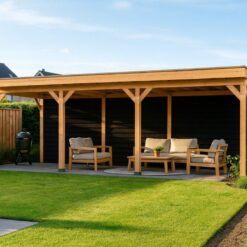 Wil je het hele jaar door genieten van het buitenleven? Dan is deze douglas overkapping van 900×300 cm een uitstekende keuze. Dankzij de extra dikke 14×14 cm staanders krijgt dit model een nog robuustere uitstraling en voelt de constructie bijzonder stabiel aan. Dit maakt de overkapping niet alleen praktisch, maar ook een luxe blikvanger in de tuin.
