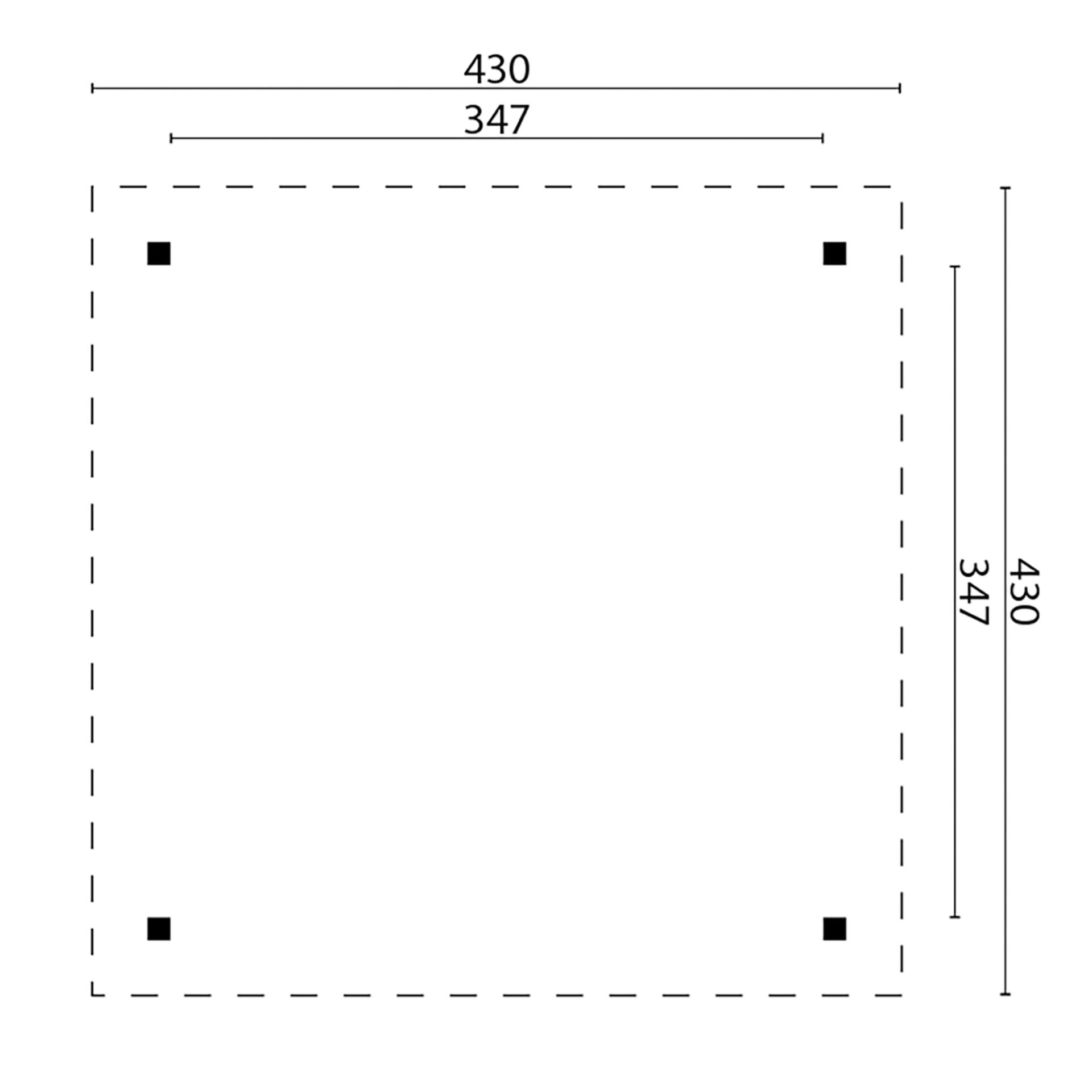 Afmeting: 430 cm x 430 cm x 330 cm ( Diepte x Breedte x Nokhoogte )