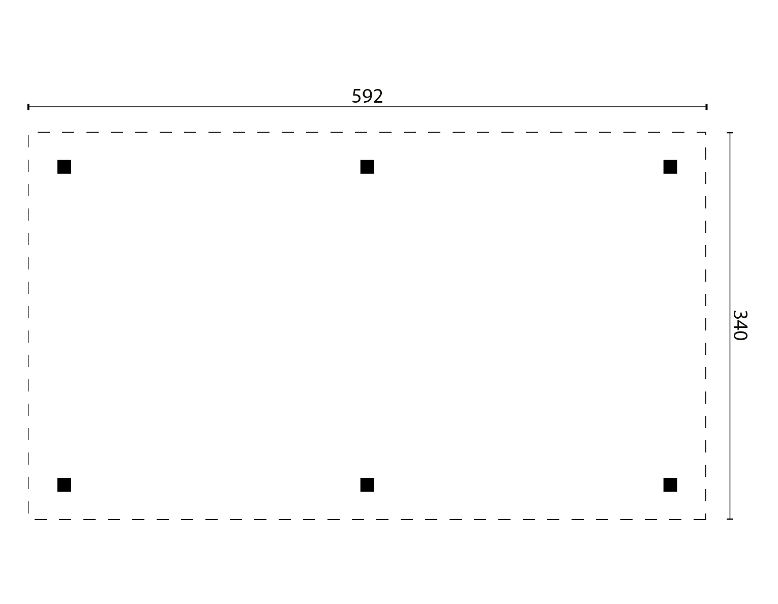 Afmeting: 340 cm x 592 cm x 225 cm ( Diepte x Breedte x Nokhoogte )