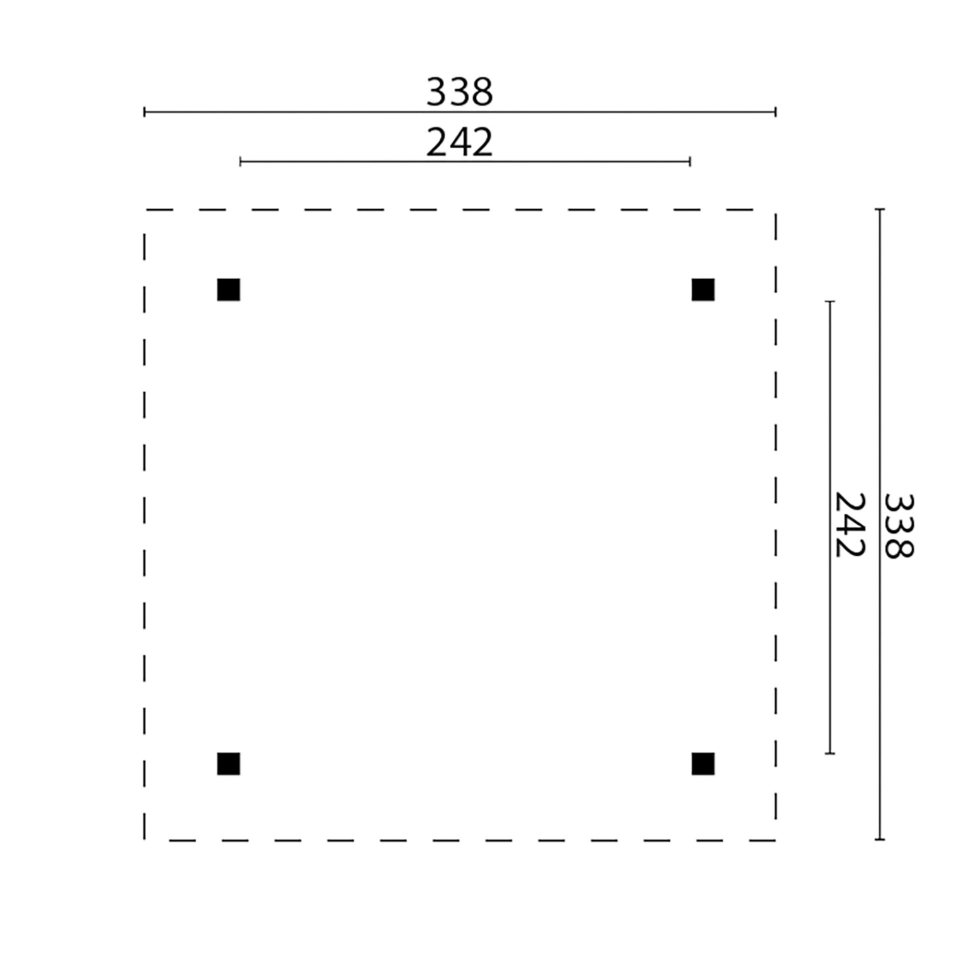 Afmeting: 388 cm x 388 cm x 305 cm ( Diepte x Breedte x Nokhoogte )