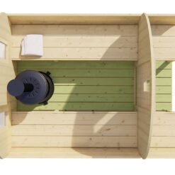 Inclusief: zwarte dakshingles, vuurvaste plaat voor kachel, espen saunabanken en vuren bankjes buiten