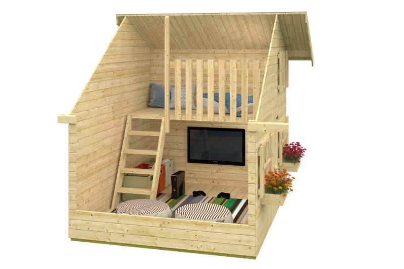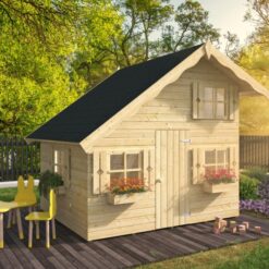 • Dit speelhuisje wordt met voorgemonteerde wanden geleverd