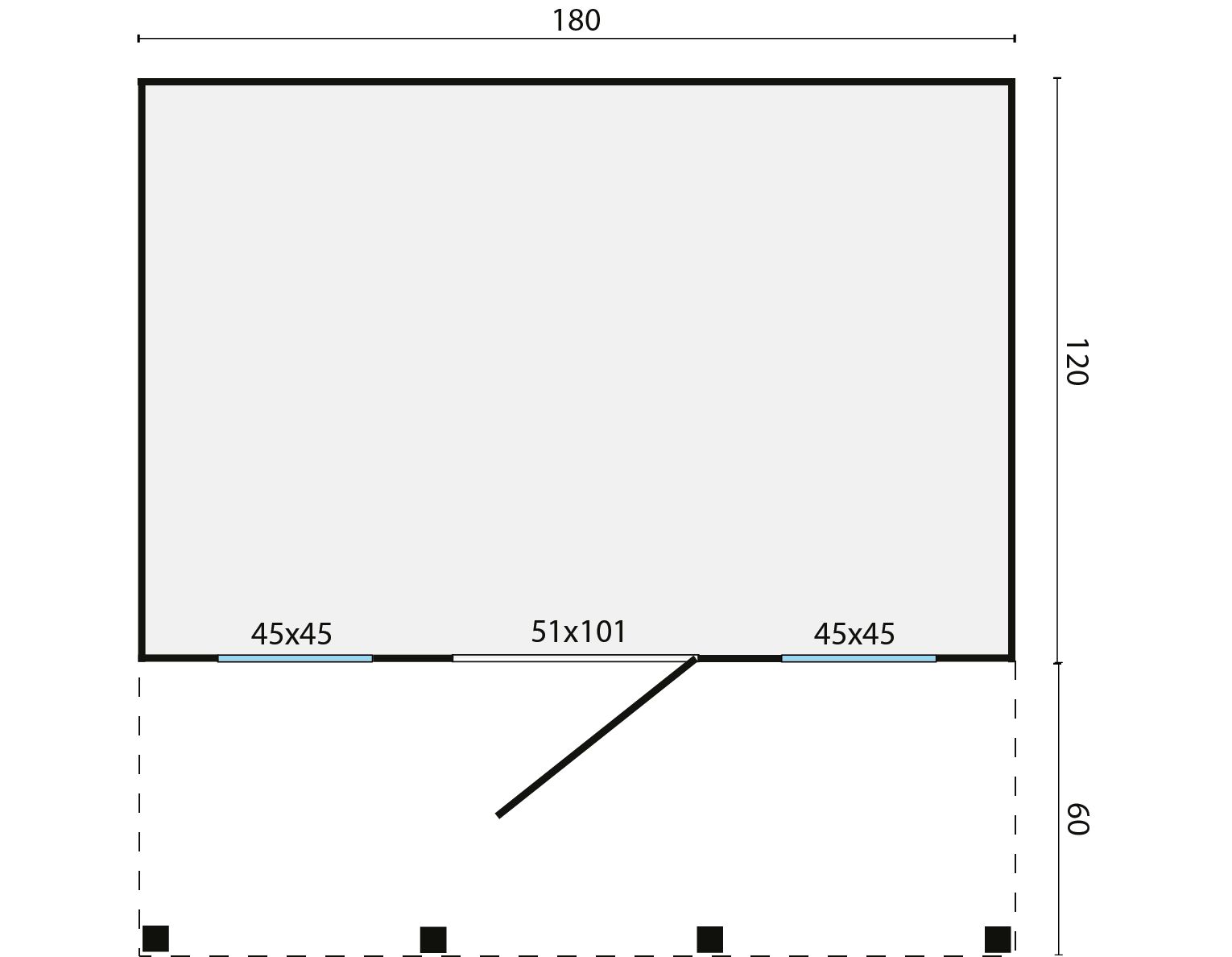• Afmeting: 120 cm x 180 cm x 257 cm. ( lengte x breedte x nokhoogte )